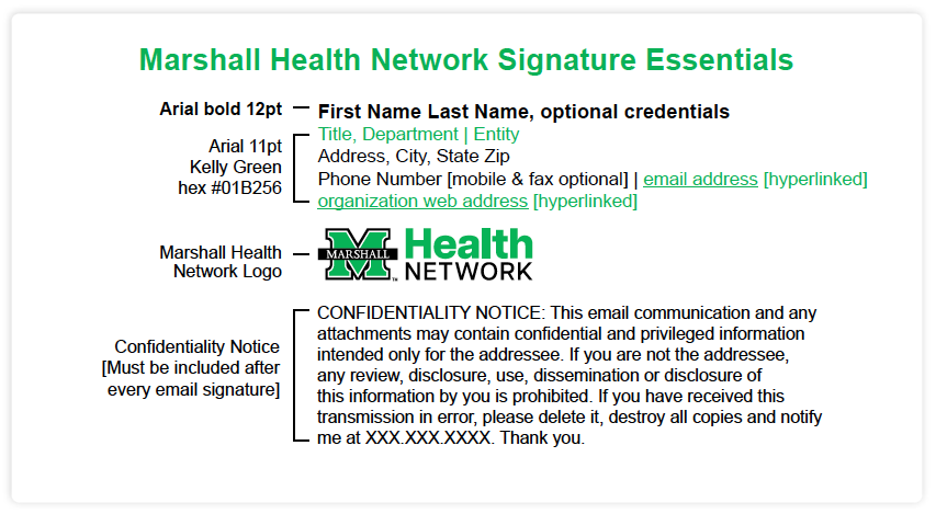 Your email signature acts as your digital business card and is a reflection of your official affiliation with Marshall Health Network and its member organizations.