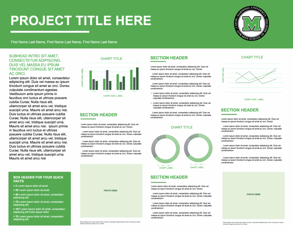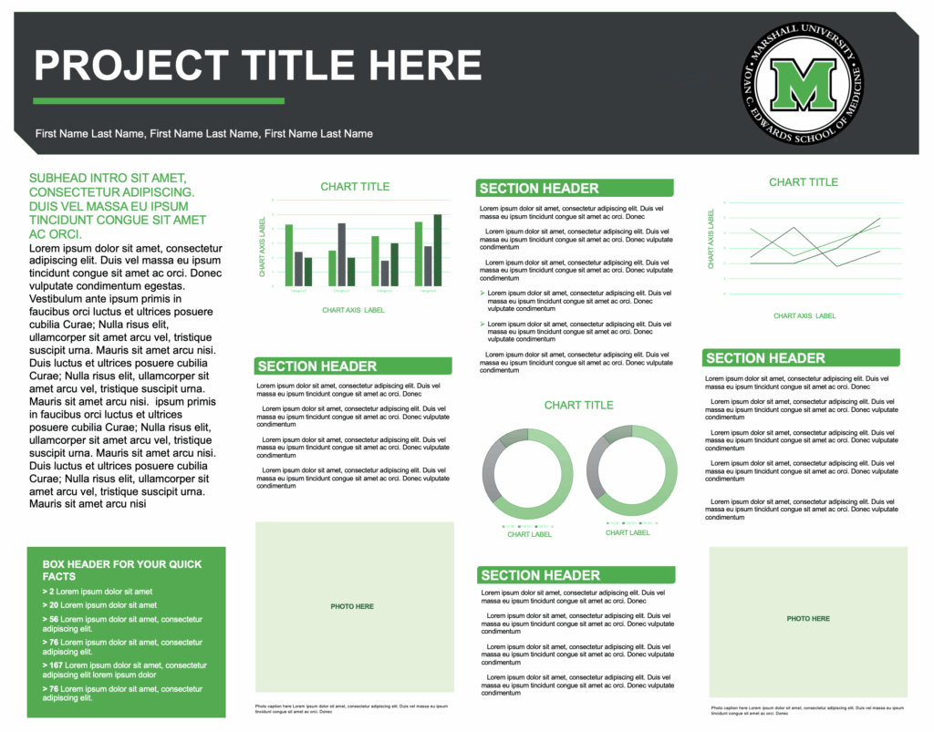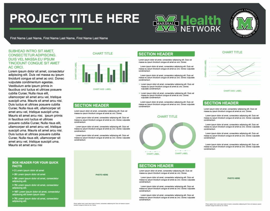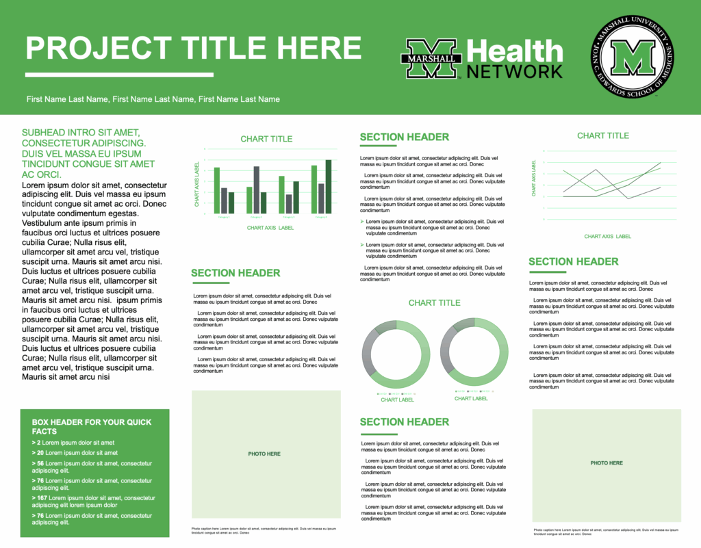 Three different research poster templates have been created for all faculty, residents, fellows, students and employees to use for their research presentation poster needs. Posters are provided in PowerPoint (pptx) format for easy editing.