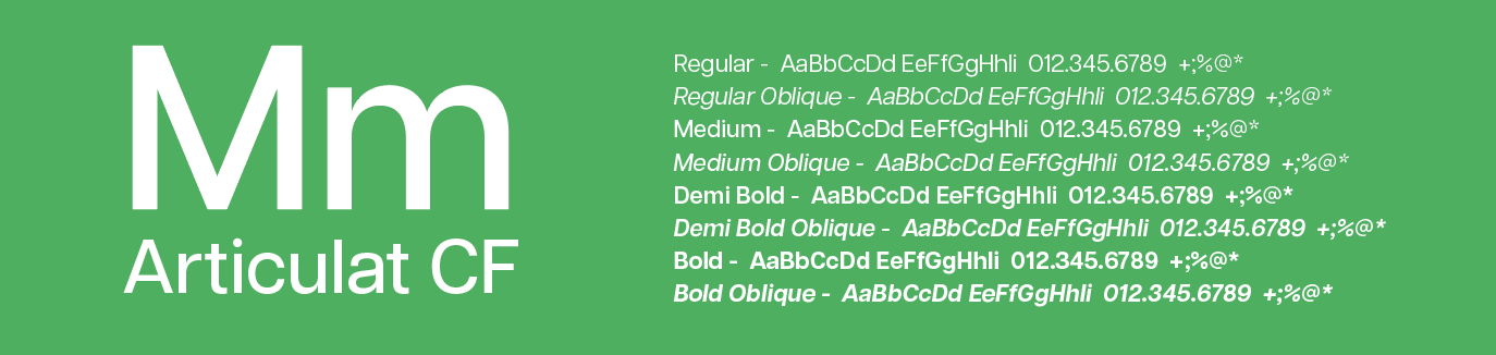 Articulat CF is the primary font for Marshall Health Network. This font is to be used for the logo, body copy and headlines. Marshall Health Network has four complementary fonts that may be used in special circumstances. If you are unable to acquire any of these fonts, Arial may be used as a substitute for body copy, headlines and call-out text.